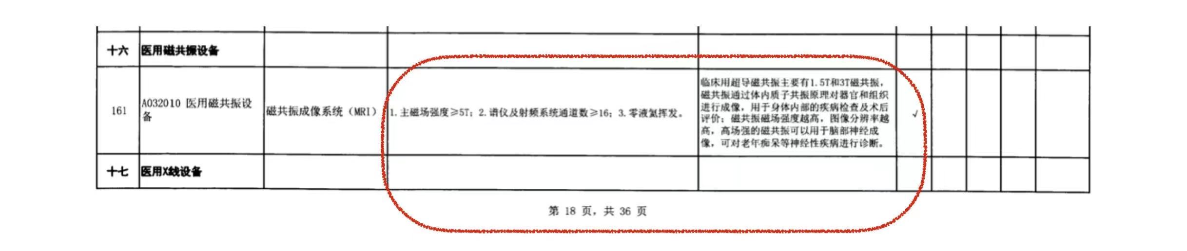 上述規(guī)定中的A032010醫(yī)用核磁共振設備,臨床用超導磁共振主要有1.5T和3.0T磁共振,磁共振通過體內(nèi)質(zhì)子共振原理對器官和組織進行成像,用于身體內(nèi)部的疾病檢查及術(shù)后評價;A032011醫(yī)用X線設備,X射線計算機體層攝影設備:1、球管熱容量大于等于5MHU;2、探測器排數(shù)大于等于16。